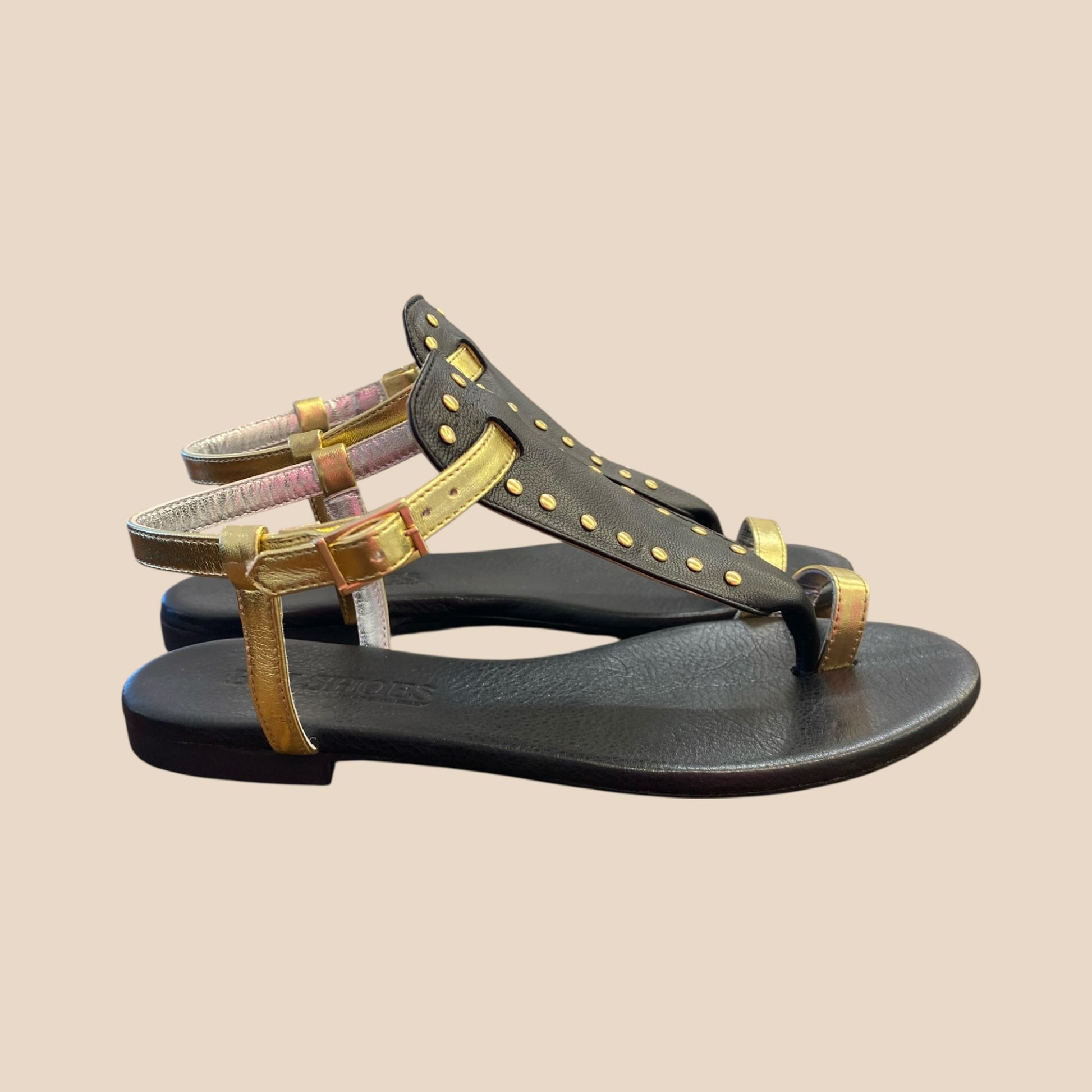 Sandalo pelle con infradito nero/platino